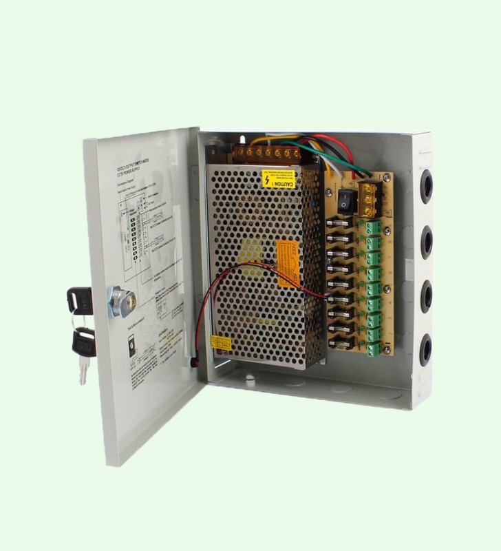 L’entrée électrique: AC 110-220V – 50 / 60Hz. La sortie est DC12V – 10A 120W, convient à la plupart des caméras CCTV.